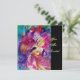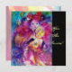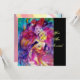 Nocturno veneciano colorido con un carácter expresivo y romántico: violinista caprichoso con trajes de color rosa fucsia brillantes y emplumados y un búho divertido a la luz de la luna, con una hermosa rosa dorada roja en la parte posterior de la tarjeta. Pintura de acuarela en colores rojo brillante, verde, azul, amarillo, destellos dorados, inspirada en Piero (Pierrot), Comedia del Arte (Commedia dell'arte) y Carnaval de Venecia. Es una hermosa tarjeta de anuncio para fiestas de vacaciones, fiestas de disfraces de Mardi Gras, ocasiones especiales, fiestas de cumpleaños de niños, dulces 16, baile de disfraces de Nochevieja, día de San Valentín, aniversarios, reuniones, ¡casi cualquier evento que desees!