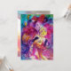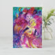 Nocturno veneciano colorido con un carácter expresivo y romántico: violinista caprichoso con trajes de fucsia rosa brillantes emplumados y un búho divertido bajo la luz de la luna, con una hermosa rosa dorada roja en la parte posterior de la tarjeta. Pintura en acuarela en colores rojo brillante, verde, azul, amarillo, destellos dorados, inspirada en Piero (Pierrot), Comedia del Arte (Commedia dell'arte) y Carnaval de Venecia. Es una hermosa tarjeta de anuncio para fiestas de vacaciones, fiestas de disfraces de Mardi Gras, ocasiones especiales, fiestas de cumpleaños de niños, dulces 16, baile de disfraces de Nochevieja, Día de San Valentín, aniversarios, reuniones, ¡casi cualquier evento que desees!