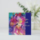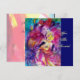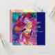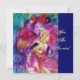 Nocturno veneciano colorido con un carácter expresivo y romántico: violinista caprichoso con trajes de fucsia rosa brillantes y emplumados y un búho divertido a la luz de la luna, con una hermosa rosa roja dorada en el dorso de la tarjeta. Pintura en acuarela en colores rojo brillante, verde, azul, amarillo, destellos de oro, inspirada en Piero (Pierrot), Comedia del Arte (Commedia dell'arte) y Carnaval de Venecia. Es una hermosa tarjeta de anuncio para vacaciones, fiestas de disfraces de Mardi Gras, ocasiones especiales, fiestas de cumpleaños de niños, dulces 16, baile de disfraces de Nochevieja, Día de San Valentín, aniversarios, reuniones, ¡casi cualquier evento que desees!