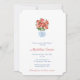 Esta invitación festiva presenta una poinsettia roja clásica en una maceta de tarro de jengibre. Se muestra aquí para una fiesta nupcial de Navidad, pero todo el texto es personalizable para su evento.