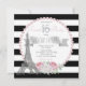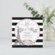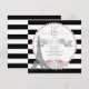 Invitaciones de fiesta paris sweet 16 con hermosas perlas rosadas y torre Eiffel en un fondo de rayas negras y blancas con números de diamante plateado elegante. Puede personalizar fácilmente esta hermosa invitación de cumpleaños paris sweet sixteen con perlas rosadas y rayas negras para su evento simplemente agregando sus detalles en el estilo de fuente que elija.