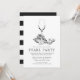 Un conjunto de invitaciones de Fiesta Perla para su próxima fiesta de caza de perlas. Estas invitaciones presentan un texto simple gris carbón oscuro, junto con una ilustración única de ostra y vino centrada hacia la parte superior. En el reverso de la invitación hay rayas negras y blancas. Todos los elementos de esta invitación son ajustables utilizando la función de personalización. Diviértase agregando sus propios detalles y haciéndola suya.