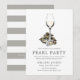 Un conjunto de invitaciones para Fiesta Perla para tu próxima fiesta de caza de perlas. Estas invitaciones presentan un texto simple en gris carbón, junto con una ilustración única de ostra y vino blanco centrada hacia la parte superior. En el reverso de la invitación hay un color gris suave. Todos los elementos de esta invitación son ajustables utilizando la función de personalización. Diviértete agregando tus propios detalles y haciéndola tuya.