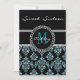 Patrón negro de Damasco con efecto fotográfico Verde azulado Purpurina azul IMPRESO. Personalice con su nombre y su monograma inicial. Diseño de Elke Clarke ©. Gráficos con licencia de uso. Hace una dulce y dulce invitación dieciséis para ella.