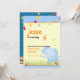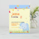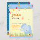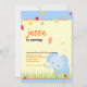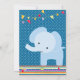 Pequeño elefante azul para invitaciones de cumpleaños... Embellecido con banderas y polka punto, estrellas. Fondo + colores de acento son personalizable.