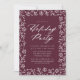 Sencilla y elegante invitación para fiestas vacacionales con un borde de copos de nieve blancos y ramas de pino sobre un fondo morado de berry. "Fiesta de vacaciones" se muestra en un guión de caligrafía en negrita blanca con los detalles de su fiesta que se muestran a continuación. La fiesta de las copas de nieve invita a los inversos a mostrar un hermoso patrón de copos de nieve.