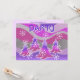 Un moderno y estilizado paisaje invernal con pinos espumosos y copos de nieve. Invitación con un diseño de personalizable morado, rosa, plateado, gris y blanco para que usted pueda personalizar con su propio texto, imágenes e ideas. El texto puede cambiarse fácilmente utilizando la plantilla proporcionada o haciendo clic en el botón "Personalizar" para realizar más modificaciones. Dibujo de lápiz de colores realzados digitalmente por Jess Perry.