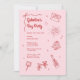 Invitación Fiesta retro de galentinas rojas y rosadas