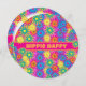 El diseño circular único y el modelo retro enrrollado del flower power hacen un hippie la invitación del fiesta del feliz cumpleaños. Grande para todas las celebraciones retras.