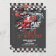 Invitación Fiesta Rojo de pista de auto de carreras de un cum