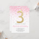 Invitación Fiesta Rosa Confetti Número de oro Chica 3 cumplea