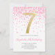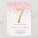 Invitación Fiesta Rosa Confetti Número de Oro Chica 7 Cumplea