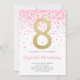 Invitación Fiesta Rosa Confetti Número de oro Chica 8 Cumplea
