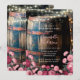 Este bonito barril rústico de whisky sirve como única pieza de decoración boda, con un aspecto envejecido y templado que desprende una elegancia vintage. El barril, que descansa sobre una plataforma de madera, está cubierto de una tapa robusta, perfecta para su uso como acento decorativo o para una pantalla funcional. Una cálida hilera de luces envueltas en un poste de madera iluminan el fondo oscuro, creando un ambiente acogedor. Delicadas flores de color rosa y burdeos enmarcan el fondo de la escena, añadiendo un toque romántico y sofisticado, lo que lo convierte en un lugar ideal para un boda rústico, de granero o de estilo rústico.