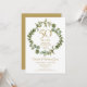 Con una elegante guirnalda de vegetación boscosa, esta invitación de fiesta sorpresa botánica chic para el 50 aniversario de bodas se puede personalizar con su información especial de aniversario de oro. El reverso presenta una guirnalda coincidente que enmarca las fechas del aniversario en elegante texto blanco sobre fondo dorado. Diseñado por Thisisnotme©