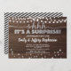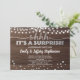 Elegante invitación a una fiesta sorpresa con luces de diseño en un fondo de madera rústica. Diseño clásico.