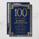 Invitación Fiesta sorpresa de foto de cumpleaños 100 Oro Azul