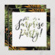 Celebra tu día especial con esta invitación de fiesta sorpresa tropical. Este diseño presenta una tipografía elegante con un patrón tropical. Perfecto para una fiesta de jardín de verano o una fiesta en el patio trasero. Puedes personalizar todo el texto en el reverso para adaptarlo a tu evento.