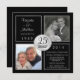 Crea tus propias invitaciones personalizadas divertidas y elegantes para la fiesta sorpresa de aniversario de bodas de plata número 25 -- dos (2) plantillas de fotos enmarcadas "entonces y ahora" -- con un hermoso emblema brillante plateado. Personaliza el nombre, la fecha y los detalles para tu celebración especial de aniversario de bodas de plata. **NOTA: Tamaño para tarjetas de invitación CUADRADAS. Otros tamaños y estilos disponibles para el aniversario de 25 años, cumpleaños y otras celebraciones de hitos felices.