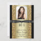 Hermosa invitación para fiesta de sweet 16 con brillo en negro y dorado con fondo brillante negro y dorado y marco de foto dorado elegante. Esta hermosa invitación de cumpleaños de sweet 16 en negro y dorado se personaliza fácilmente con tu foto y detalles del evento en el estilo de letra y color, y redacción de tu elección. También puedes cambiar el color de fondo en esta elegante invitación de cumpleaños de sweet sixteen en negro y dorado. Este es un diseño impreso sin cintas, lazos, brillo, etc. reales.
