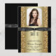 Invitación Fiesta Sweet 16 con brillo negro y dorado