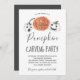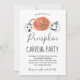 La invitación a la fiesta de tallado de calabaza de linterna de Halloween incluye divertidas calabazas talladas en color agua.
