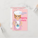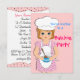 Una niña tan linda con un vestido rosa de punto de polka, un delantal y el gorra del chef haciendo un poco de horneado. Una fiesta de cumpleaños infantil divertida invita con un tema fiesta de hornear, adorable y tan fácil de personalizar con los detalles personales del fiesta de su hijo.