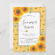 Un fondo amarillo adornado con rústicos girasoles acuáticos y alegres abejas sonrientes para su jardín, fiesta de verano en el patio trasero. Personalice y agregue los detalles de su fiesta, información.