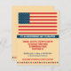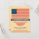 Esta invitación muestra una bandera horizontal de Estados Unidos audaz y orgullosamente en la parte superior de esta invitación moderna de fondo color crema para la fiesta del Día de la Independencia. Un rico cartel azul muestra el mensaje del Día de la Independencia con todos los textos impresos debajo. Una fila de estrellas en rojo y azul acaba de la invitación. Ideal para una barbacoa, fiesta de piscina o lo que sea que pueda traer el 4 de julio. Disponible con productos a juego y en orientación horizontal.