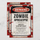 Invitación Fiesta zombi con signo BEWARE y manchas de sangre