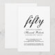 50 Fifty and Fabulous minimal black and white modern script 50th birthday invitation that you can personalize and send out for your fiftieth birthday party celebration. The words "Fifty and Fabulous" are set using popular elegant script font typography - modern, minimal, classic, timeless. The text colors can be changed using the edit menu.