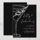 Invitación Fifty and Fabulous Black Script Line Art Martini