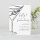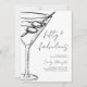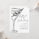 Invitación Fifty and Fabulous Black Script Line Art Martini