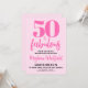 Fifty and Fabulous script minimal blush pink, hot pink and black modern 50th birthday invitation that you can personalize and send out for your fiftieth birthday party celebration. The words "50 and Fabulous" are set using popular script font typography. The text colors can be changed using the edit menu.