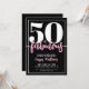 Introducing a chic and stylish "50 and Fabulous" birthday party invitation, perfect for celebrating this milestone with flair. The sleek design features a bold black background with "50 and Fabulous" prominently displayed at the top in elegant bold serif and script calligraphy. The text throughout the invitation combines modern and script fonts in white and pink, creating a fun yet sophisticated contrast against the black backdrop. A clean white frame around the edge adds a touch of elegance. Ideal for a fabulous 50th birthday celebration, with customizable background colors, fonts, and frame to match your style. Modern 50th Birthday Party Invitation Black Pink White Bold Script Fun Fabulous Typography.