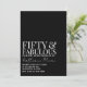 Minimal modern Fifty and Fabulous photo overlay white text 50th birthday invitation that you can personalize and send out for your fiftieth birthday party celebration. The words "Fifty and Fabulous" are set using trending font typography. The opacity of your uploaded photo and the text colors can be changed using the edit menu.