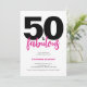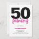 Fifty and Fabulous script minimal blush pink, hot pink and black modern 50th birthday invitation that you can personalize and send out for your fiftieth birthday party celebration. The words "Fifty and Fabulous" are set using popular script font typography. The text colors can be changed using the edit menu.