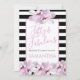 Invitación Fifty & Fabulous Pink Floral Black Stripe Birthday