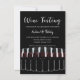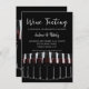 Invitación Fila de copas de vino con vino tinto sobre negro.