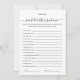 Añade risas a tu celebración con este juego Finalizar la frase de la novia. Los huéspedes tratan de completar frases como lo haría la novia, lo que lo convierte en una actividad divertida e interactiva para las duchas de novias, las fiestas de soltera o las noches de soltera. Esta plantilla fácil de imprimir es perfecta para crear momentos memorables.