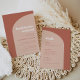 Minimalista pero sorprendente: adoptar este diseño tipográfico ligeramente retro y elegante para su papelería boda, con un diseño de arco moderno y colores de terracota y naranja quemado. Personalizable completo de texto, colores y fondos.