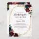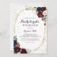 Esta invitación geométrica de fin de semana a la soltera con purpurina de oro cae es perfecta para una simple soltera. El diseño presenta acuarelas pintadas a mano color azul marino, burdeos, rojos, rosas ondulados y peonías con elegantes hojas verdes, inspirando la colorida e idílica belleza del otoño.