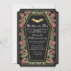 Es hora de despedirse definitivamente de la soltera con esta invitación a fin de semana a Bachelorette Rosas del ataúd. Estas invitaciones presentan un diseño elegante de ataúd sobre rosas y espinas. ¡Perfecto para una celebración oscura y glamurosa! ¡Pida ahora y haga este hito inolvidable! Tenga en cuenta que el oro de la invitación NO es un Relieve metalizado real y está impreso en colores planos.