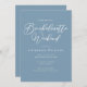 Esta polvorienta invitación de fin de semana a la soltera costera azul muestra un clásico guión blanco para una novia que va a tener un evento de lujo de 3 días en una playa con sus amigos. Una moda, una minimalista fiesta de soltería, invita a una excursión costera a la costa.