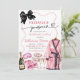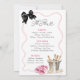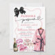 Invitación para fin de semana de soltera con pijamas y prosecco, Invitación para fin de semana de soltera con lazo negro coquette, Invitación para fiesta de pijamas y prosecco, Itinerario de fin de semana de soltera