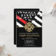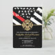 This design features a firemen's flag with black and white stripes, and a thin red line stripe as well. A fireman's badge sits above all of the party details for the graduating firefighter. This design also works great for a retiring firefighter, lieutenant, or chief's retirement party.