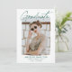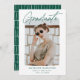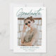 La fiesta de graduación a la moda invita a presentar la foto del graduado en la parte delantera enmarcada por un borde blanco áspero. "Graduado" se muestra en un guión con firma verde con el nombre del graduado, el nombre de la escuela y el año de graduación que se muestra a continuación. La moderna fiesta de graduación invita a los reversos a mostrar los detalles de tu fiesta de graduación con un único fondo de línea sellada verde y blanco. Esta invitación a una fiesta de graduación fotográfica es perfecta tanto para fiestas de graduación de secundaria como universitarios.