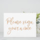 Un letrero elegante con la frase "Por favor firme" escrita a mano