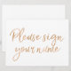 Un letrero elegante con la frase "Por favor firme" escrita a mano