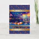 First Candle of Hanukkah. Happy Hanukkah Festival of lights Party Invitation Beautiful Jewish Holiday Card. Jewish Holiday Chanukkah background with traditional Chanuka decorative symbols - wooden dreidels (spinning top), donuts, hanukkiah menorah, candles, star of David and glowing lights wallpaper gold pattern. Hanukkah Festival of lights Event Decoration. Jerusalem, Israel. Invitations & Stationery > Invitations & Announcements Design with text template. Personalize them by adding name or wishes text.